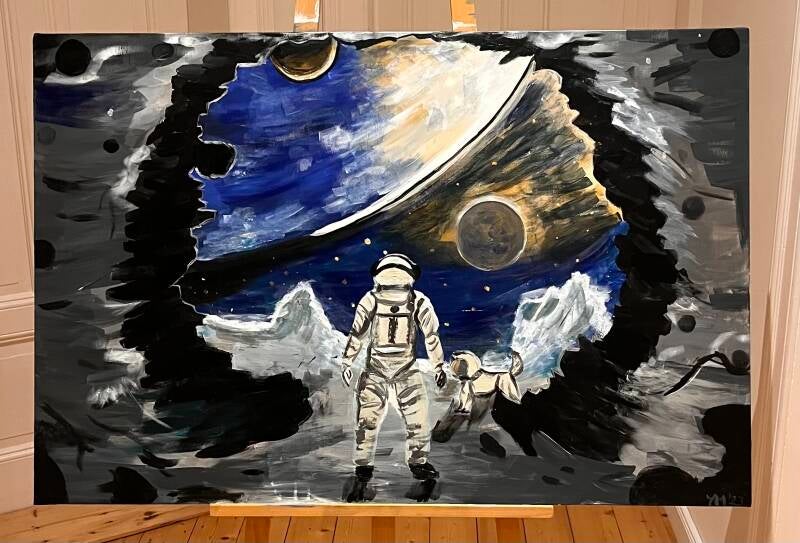 Freiheit - Astronaut mit Dogonaut, Acryl auf recycelter Leinwand